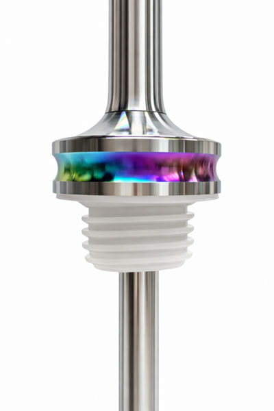 ホースから空気を送ることで、ボトル上部の煙だまりがステムから円形に排出されます。